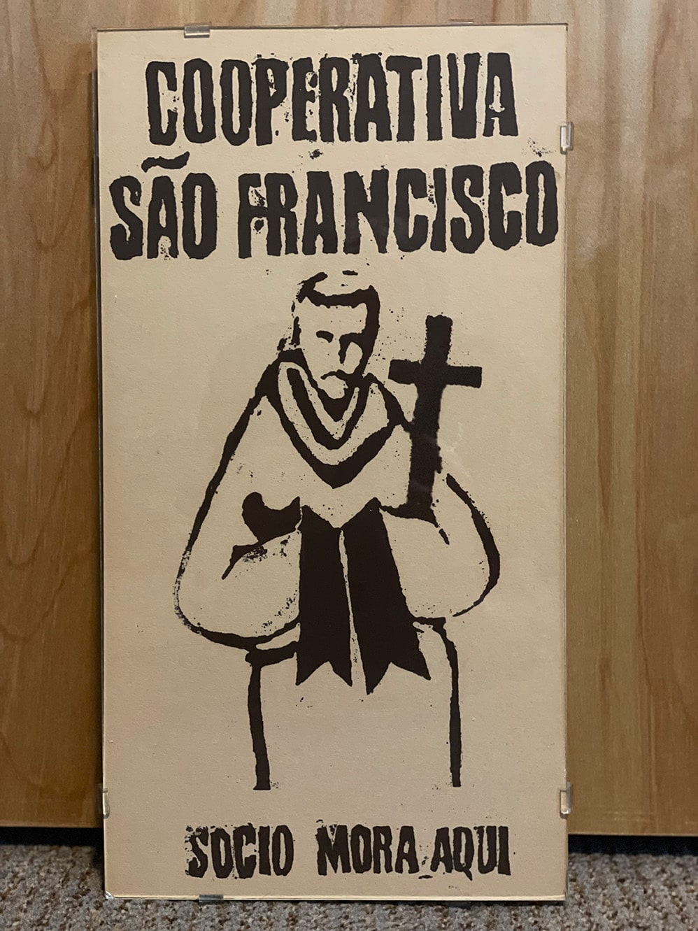 The co-op grew and had thirty members. I wanted to let others know and I asked Carol Heinz, another volunteer, to help me create a poster. She knew how to silk screen and we made some beautiful posters. She also became my wife. I hung the signs outside of houses to inform people that a member of the Sao Francisco Health Co-op lives there.